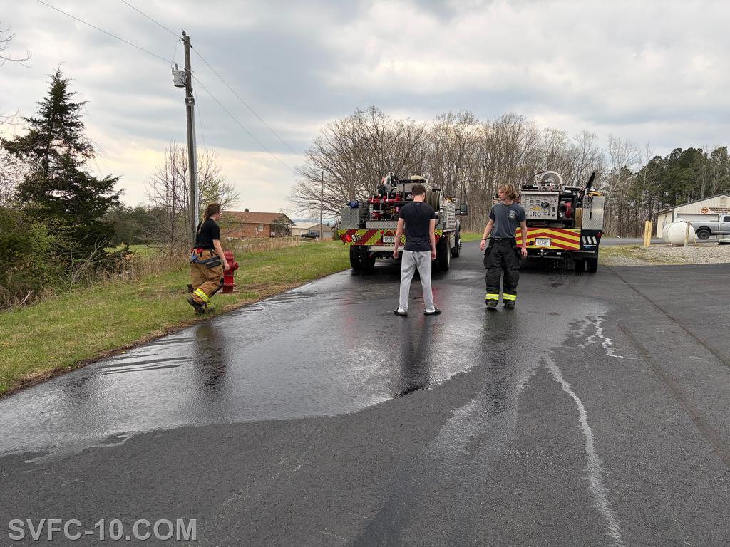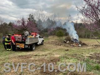 On March 27, 2026, at 1:41 pm, Company 10 responded to an unauthorized burn on White House Road in Huddleston.FR/C10, B10, B10A, FR/FMO.